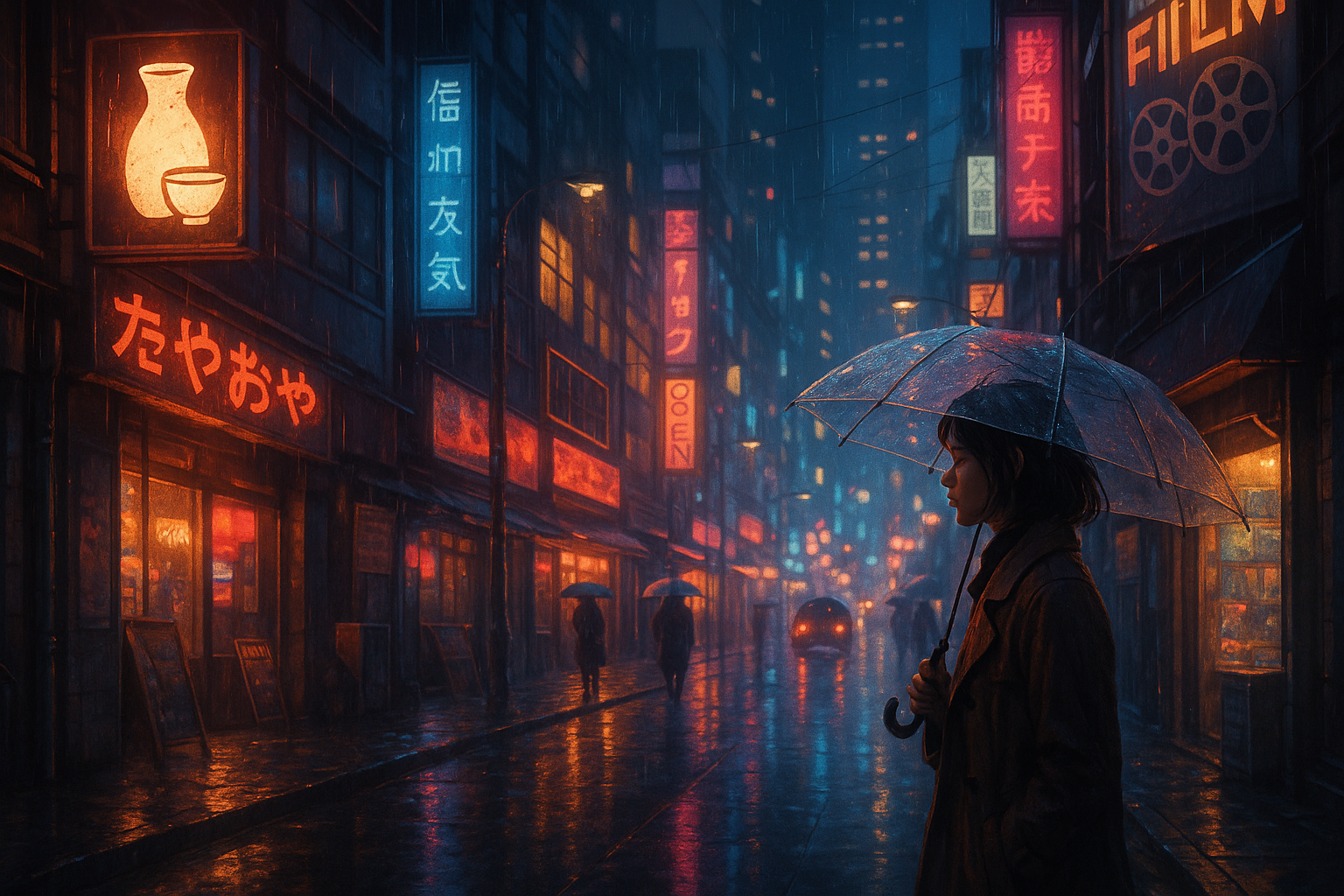 「A cinematic shot of a rainy Tokyo street at night」──その一文が、雨粒の反射やカメラの奥行きまで再現する。
